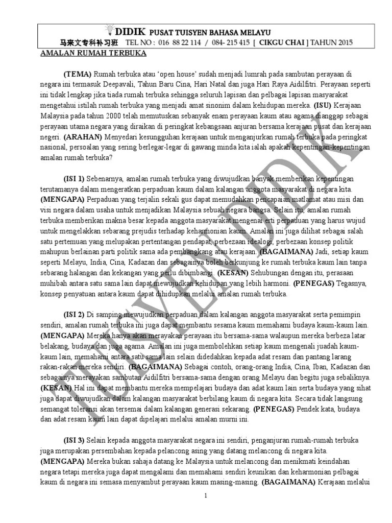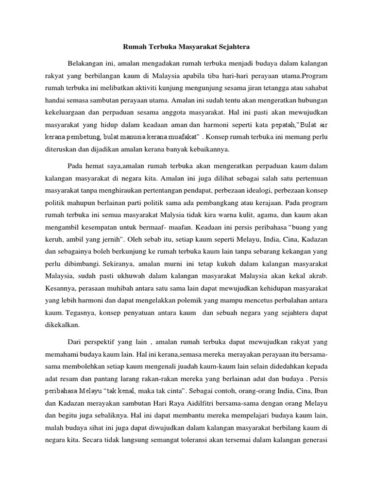 Rumah terbuka rakyat malaysia karangan spm rumah terbuka sering diadakan kerana malaysia . Doc karangan cemerlang spm kebaikan amalan rumah terbuka najat ruhi academia edu. Esei rumah terbuka masyarakat sejahtera. 60 contoh karangan 10 ayat cikgu fadzil . 60 contoh karangan 10 ayat cikgu fadzil ~ 0195698686 17 tema masyarakat 30. Jiran berbangsa melayu dan india untuk menghadiri rumah terbuka pada .